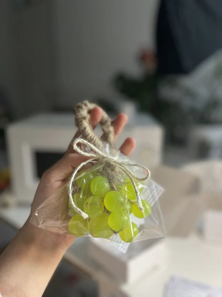Doğal Yapılı Üzüm Salkımı El Sabunu, jel benzeri yapısı sayesinde elde hızlıca köpürür ve nazik bir temizlik sunar. Şık salkım formu hem dekoratif bir görünüm sağlar hem de banyonuza estetik bir dokunuş katar. Hafif ve ferah kokusuyla her kullanımda tazelik hissi verir. Doğal ve zarif bir temizlik deneyimi için şimdi keşfedin!